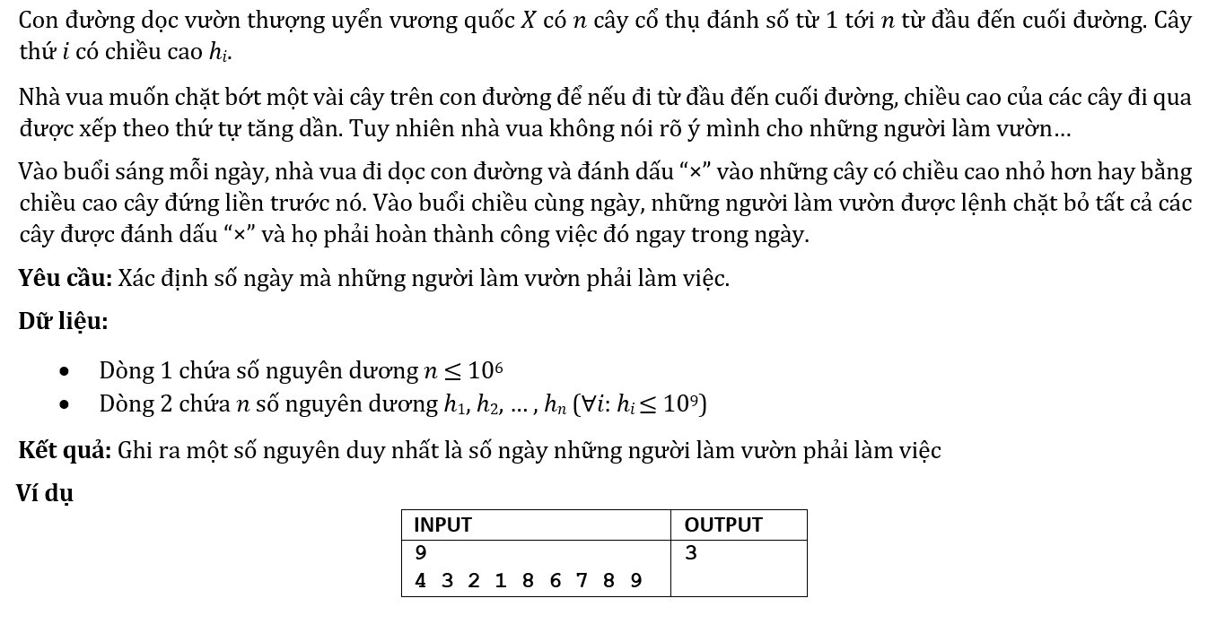 - Subtask \(2\) (\(60\%\) số điểm): \(1 \le n \le 5 \times 10^5\).